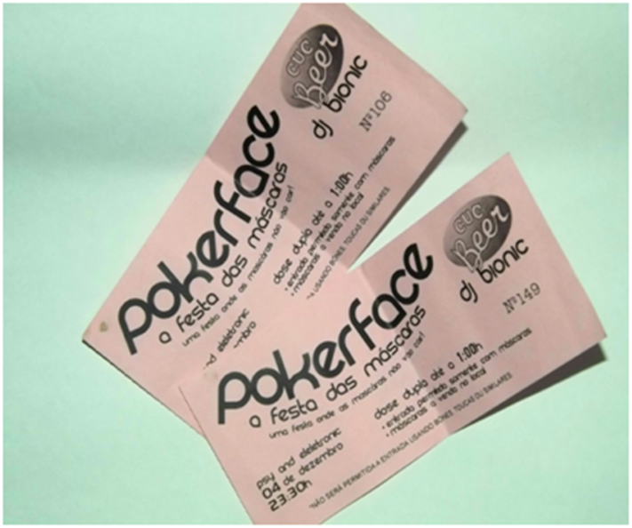 Faz tempo já, mas esses dias uma amiga me deu para eu guardar, pois ela estava arrumando as coisas e encontrou, eu guardo na minha carteira esses ingressos são de uma festa que fui Dj a festa foi muito boa, e quem não guarda algum ingresso de alguma festa que marcou. A festa era de máscara, lembro-me da minha mascara que era toda feita de espelhos deu um trabalho pra fazer, e mesmo foi a surpresa das pessoas que foram na festa vendo que na verdade eu era o Dj da festa, pois inventei um nome fictício para ninguém saber que era eu o Dj, mas foi muito bom lembro como se fosse hoje.