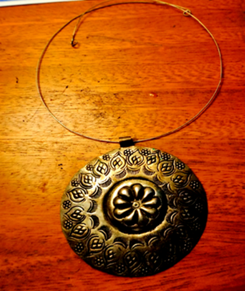 Comprei esse colar no ano de 2008, em Marrakesh, no Marrocos. Foi uma das viagens mais incríveis e cinematográficas que já fiz. Além de ter apreciado a viagem, quando estava indo embora, fui detida no aeroporto de Barcelona (devido a um problema de visto), e deportada para o Marrocos,onde tive que voltar por uma segunda vez que não estava em meus planos. Passado o susto, fiquei feliz em voltar para aquele lugar encantador e comprei esse colar como souvenir. Eu nunca o uso, mas ele faz parte da decoração de meu quarto, e sempre que o vejo me lembro do barulho e dos cheiros das ruas de Marrakesh. Boas lembranças. B.B PelotasRS