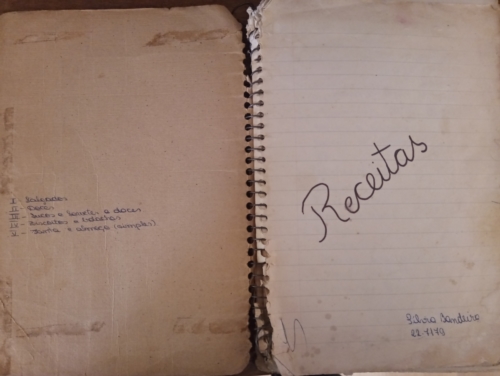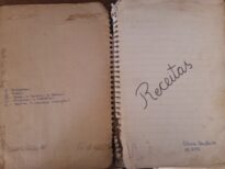 Comecei esse caderno de receitas aos 15 anos, quando fazia aulas de culinária na escola. Fui acumulando receitas das pessoas amigas. Essas receitas à mão tem me acompanhado nesses dias de pandemia, fazendo com que eu lembre, com carinho, de quem as copiei.