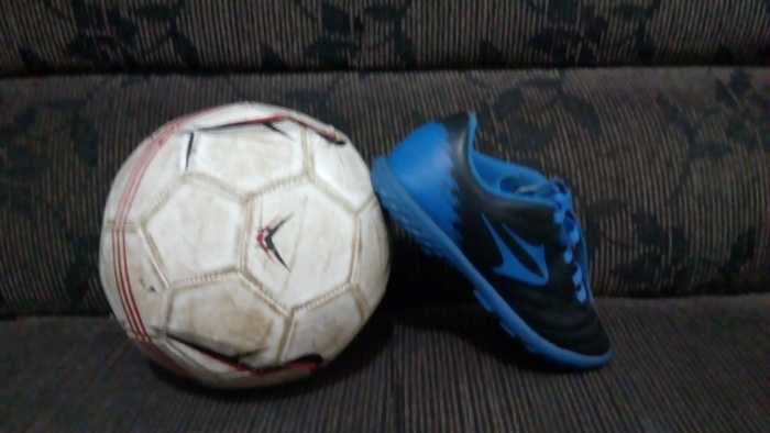 Ganhei essa chuteira da minha mãe. Gostei muito do presente. Foi com ela que eu fiz um gol incrível. Ou seja, o melhor gol até agora...guardarei para sempre em minha memória.…