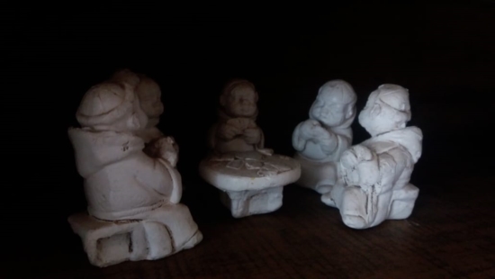 Esses bonequinhos ficavam na estante da casa da minha vó, e toda vez que eu ia na casa dela, a moça que limpava a casa da minha vó sempre trocava eles de lugar, e eu sempre ia la para arrumar, depois que minha vó faleceu, esses bonequinhos veio para minha casa e eu deixo eles no mesmo lugar arrumadinhos.