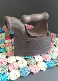 Este ferro de passar me trás uma memória afetiva da minha Tia Bá (Lurdes, que cuidada de mim e meus primos na casa de minha avó quando pequenos). Ela tinha um ferro de passar parecido com este, que colocava o carvão para esquentar e passar as roupas. Roupas alvas, cheirosas e bem passadas. Participei de um projeto cultural em uma comunidade quilombola no interior da Bahia, e lá tinha um antiquário, quando vi o ferro lembrei de Tia Bá, comentei com o dono do antiquário sobre a lembrança afetiva e ele me presenteou com este ferro de passar. Passando com Amor!!!
