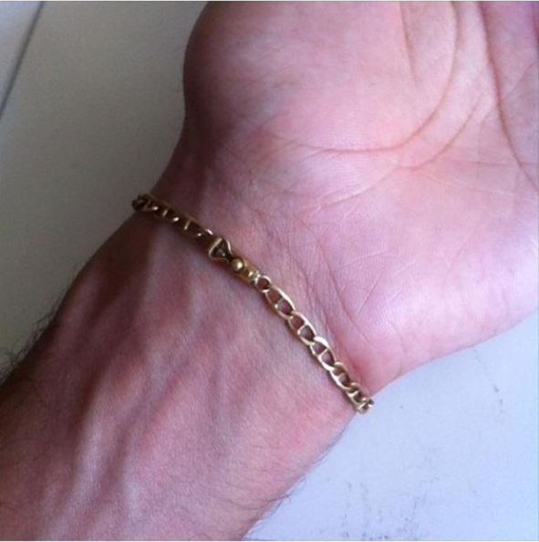 Pulseira que foi presente dos meus avós. Símbolo da conquista da estabilidade após muitos anos de pouco dinheiro, incertezas e dificuldades. Infelizmente não uso mais todos os dias, por ter medo de perdê-la, mas sempre que posso ando com ela. Me faz lembrar da origem da minha família, da luta que viveram e o quanto é importante o respeito ao próximo, seja ele rico ou morador de rua.