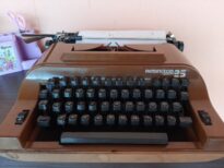 É difícil precisar com exatidão a data do invenção da máquina de escrever, segundo estudiosos, se deu entre 1719 a 1800. Desde sempre a comunicação entre os homens é algo primordial, seja ela verbal ou não, através de linguagem corporal ou gestos, certo é que sempre tivemos a necessidade de nos comunicarmos. E através da comunicação formamos opinião, expressamos sentimentos, fazemos história. O artefato da foto chegou pra mim em meados de 1989, era uma criança ávida por leituras, gostava muito de escrever em caderninhos e diários, colecionar papeis de carta e até embalagens de doces diferentes, realizava colagens e desenhos destacando pensamentos do dia em meus cadernos. Meu pai, homem simples, com pouco estudo, porém sabido de que através dos estudos é que se pode mudar muitas coisas, sempre me incentivou a estudar, ele dizia "um dia você será professora!". Apesar de meus pais não terem tido as oportunidades de estudo que tive, as estantes sempre tinham livros, minha mãe sempre estava parcelando enciclopédias que eram vendidas de porta em porta pra garantir que fôssemos jovens pesquisadores. Daí então meu pai me presenteou com essa máquina, a 30 anos atrás, utilizei por muito tempo, escrevi cartas pra família toda, e para minhas amigas, era forte meio de comunicação, insistia pra minha mãe enviar algumas cartas pelo correio mesmo podendo entregá-las pessoalmente só pra eu e minhas amigas termos esse prazer de receber uma carta pelo correio...quando não tinha o que escrever, pegava livros de poemas para copiá-los na folha sulfite, me sentia tão importante! Fiz muitos trabalhos escolares nela, e me lembro de meu pai com sua xícara de café fumaçando de quente, encostado na parede entre o corredor e a sala me observando digitar. E meus irmãos em cima de mim curiosos por saber como usar a tal máquina, algumas vezes compartilhava a tarefa com minha irmã mais nova, eu digitava e ela empurrava a alavanca ao final da folha ou girava a pequena manivela (se posso chamar assim) pra subir a folha e continuar a escrita. Fui muitas vezes na avenida próxima de casa para colocar as cartas na caixa de correio, aquelas amarelas com emblema destacado em azul e branco que o carteiro passava pra recolher depois. Tenho ela comigo, já sem uso, pois foi substituída a tempos pelo computador, mas ela é como um amuleto pra mim e tenho tanto orgulho de tê-la, sou professora e sempre que falo sobre inventos e passagem de tempo faço questão de levá-la a escola para exposição junto com outros objetos que fazem parte da história da humanidade e da minha história pessoal. Ah, e meu pai tem orgulho de quando me vê utilizando o artefato para minhas aulas e de ver que ela se tornou parte da nossa história, a história da família Santos.