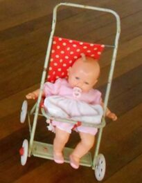 Na infância brinquei muito de boneca. Sempre tive muito cuidado com meus brinquedos, tanto que conservo vários até hoje, em bom estado, principalmente ursinhos de pelúcia. Esse carrinho eu tenho desde que tinha 3 anos. Os passeios das bonecas eram sempre no carrinho. As bonecas foram substituídas, mas o carrinho permaneceu. Recentemente, resgatei o carinho por esse carrinho, pois ele integrou minha pesquisa de TCC, que tem como título "Eu. Elas. Eu... Em busca de uma (auto)biografia Ou (Auto)Biografia e memórias no teatro documentário". Foi durante a pesquisa que descobri o Museu Das Coisas Banais e logo pensei: o meu carrinho fará parte desse Museu! Ele continua comigo e permanecerá por perto, para que eu nunca esqueça do quanto é bom ser criança.