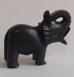 Esse elefante de pedra sabão tem um valor inestimável na minha pequena, mas satisfatória, coleção de elefantes. Ganhei de uma grande amiga de Minas Gerais, numa visita que realizei em meados de 2000. A viagem foi sensacional. Minha primeira ida a Minas. E como lembrança, na despedida, ela me presenteou com esse lindo elefante. Sinto muitas saudades da minha amiga e também de Minas Gerais."Escultura em pedra representando um elefante.