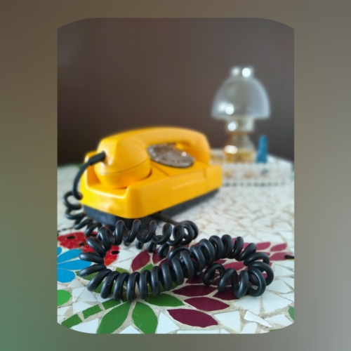 Em quarentena o tempo ganhou um gostinho de saudade. O isola(afeta)mento fez-me rever (sentir) objetos em casa e dar a eles o tempo-atenção de memórias afetivas, dentre eles este telefone antigo. Na minha infância, nos idos do ano de 1975 três números conectavam-me a minha avó Maria. Bastava eu discar 258. Hoje eu precisaria de um tanto mais de dígitos, mas minha avó não está mais lá. Então eu admiro o meu telefone amarelo, porque traz a sensação do quanto estamos próximas mesmo ela em outro plano. A magia deste encontro permanece e assim o isolamento e o tempo efêmeros jazem vivos em mim.
