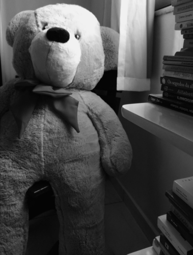 Há três meses não o via. A quarentena nos distanciou. Meu amor, meu companheiro... Meu namorado. A saudade nos acompanhava e era verbalizada a cada vídeo chamada. Como estar presente, fisicamente, sem poder estar? Chegou um embrulho, numa grande sacola preta, pensei: ""Uma manta!"". A sacola foi aberta: um urso se abriu como uma rosa. Senti o meu namorado aqui. Seu amor transbordou na presença do grande urso. Apertei, fiz carinho, deitei sobre seus grandes braços... E imaginei o abraço que tanto desejava receber.