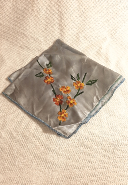 Este lenço ganhei recentemente de uma grande amiga em um de nossos cafés rotineiros. Minha amiga perdeu seu pai recentemente ao fim do nosso café ela disse que me tinha um presente. Emocionada com o momento de saudade, me presenteou com uma das duas lembranças que ficou do seu pai, este lenço cheio de lembranças e afeto. Fiquei muito feliz e contente pela responsabilidade que ela me deu de ser o guardião deste lindo lenço cheio de lembranças