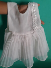 "Esse é meu vestido de batizado, eu tinha apenas um mês quando usei, foi comprado em 2000 logo quando minha mãe soube que estava grávida de sua primeira filha mulher. Ele trás uma história incrível de uma mãe solteira que mesmo com críticas e muita dificuldade finaceira criou a mim e meus 2 irmãos da melhor maneira possível. Quando eu tinha 8 anos, encontrei esse vestido dentro de uma sacola onde era guardado também outras roupinhas, fiquei muito feliz porque passou a ser roupa de boneca, coisa que eu não tinha. Sempre levei escondido para a casa das amigas e nunca brinquei na minha pois ja sabia que não podia, na brincadeira era usado como vestido de noiva para fazer casamento de boneca. Um dia quando eu não estava em casa, minha prima foi pedir emprestado pra brincar e nesse trágico dia minha mãe descobriu, brigou comigo e escondeu de mim ""para sempre"", até eu encontrar novamente com 17 anos quando não me tinha mais aquela utilidade de antes. Minha mãe guardava de cada filho uma roupa e essa é a minha que tem inúmeras memórias da minha infância."