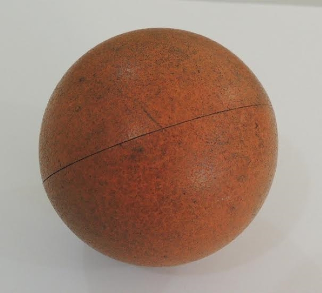 Esta bola de borracha eu ganhei do meu avô quando eu era criança, me lembro que eu obrigava ele a jogar bola comigo todo dia. Ela tem a textura áspera e tem 5 cm de diâmetro. Já está bem gasta. Eu a guardo porque me lembra muito minha infância mesmo que para o museu ou para o banco não tenha valor.