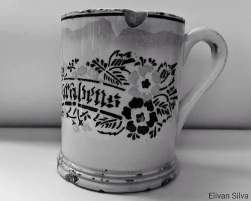 A caneca foi um presente da minha avó paterna, a Vó Zica (o nome dela é Anésia, mas ela gosta de Zica, apelido que a avó dela deu na infância). Vó Zica ganhou essa caneca da avó dela como presente de aniversário (há a inscrição "Parabéns" nela) e me deu com o compromisso de zelar e passar para um filho ou neto um dia.