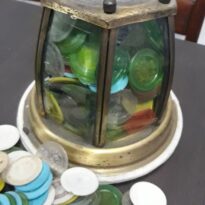 Possui 4 paredes de vidro transparente com divisórias em metal dourado (com coloração desbotada pela ação do tempo) e uma tampa em metal com uma pequena entrada para inserir as fixas. No interior se encontra diversos tipos de fixas de transporte da época.