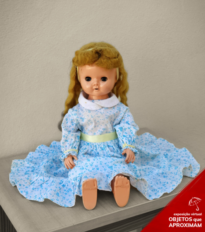 Boneca de louça, articulada, dá passinhos amparada pelas mãos firmes de um humano. Está comigo há 62 anos, presente de aniversário de 1 ano de idade, de valor afetivo inestimável, companheira das minhas dores e alegrias de viver.
