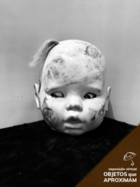 Esse objeto é a cabeça de um boneco de plástico flexível. Eu estava dirigindo numa via movimentada da cidade de recife e um veículo "atropelou" essa cabeça, que rolou pulando ao longo do asfalto. De imediato, lembrei-me da infância quando brincávamos, mas não tínhamos dinheiro para comprar esse tipo de brinquedo. Então, estacionei o carro no acostamento e saí correndo atrás da cabeça que rolava no asfalto. Porém, consegui alcançá-la e a trouxe para casa, sem limpar, pois eu queria as marcas do momento em que nos encontramos.