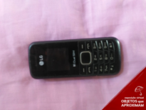 Aparelho celular com o corpo na cor preta e detalhes escritos na cor branca. Possui uma tela e um teclado com 17 botões. A marca está escrita em cima da tela com o seu logotipo e "LG".