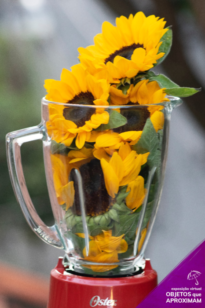 Liquidificador, imponente, com copo de vidro, motor forte e cor vermelha, um eletrodoméstico muito especial e companheiro de aventuras culinárias; tritura amendoins, aveia, inhame e amêndoas para produzir leites vegetais, faz sucos verdes e da combinação das mais variadas frutas para aumentar a imunidade, tritura legumes para os diversos tipos de caldo. Na pandemia, além de sua função habitual, possibilitou novos experimentos, como um suco de girassóis amarelos, e se tornou um ótimo amigo para dialogar e refletir sobre a vida e assim, apaziguar a solidão decorrente do isolamento social.