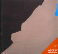 Pintura com um formato de um penhasco na esquerda em marrom escuro e o resto em bege claro com um pequeno detalhe em azul claro no canto superior a direita.