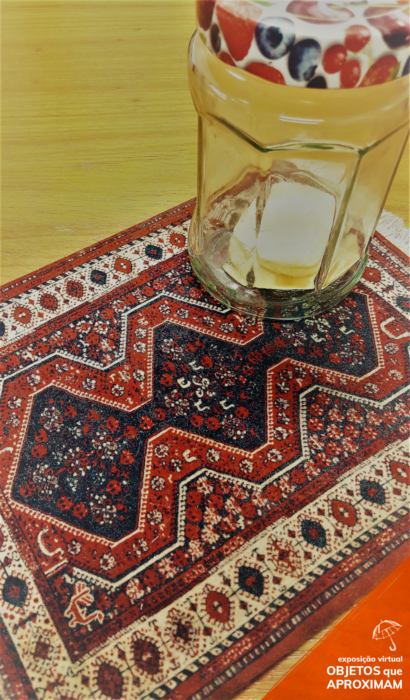 Mousepad colorido com detalhes tipo tapete oriental.