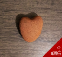 Pedra colorida em tons de barro vermelho no formato de um coração.