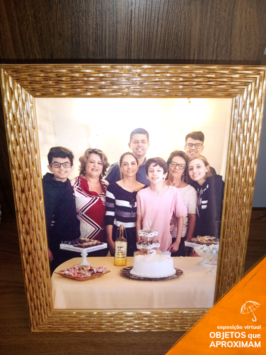 Neste porta-retrato, registra uma lembrança do aniversário da minha mãe e minha vó. Foi um momento singular pois além da família reunida celebramos a vida pela passagem de 75 anos de existência de minha vó materna! Pois expressa sentimentos únicos vivenciados neste dia. São valores imprescindíveis a convivência humana: alegria união festa reencontro de amigos. Nestes tempos de Pandemia infelizmente não podemos estar juntos de forma intensa e nem trocar afetos por está razão a foto ameniza a saudade.