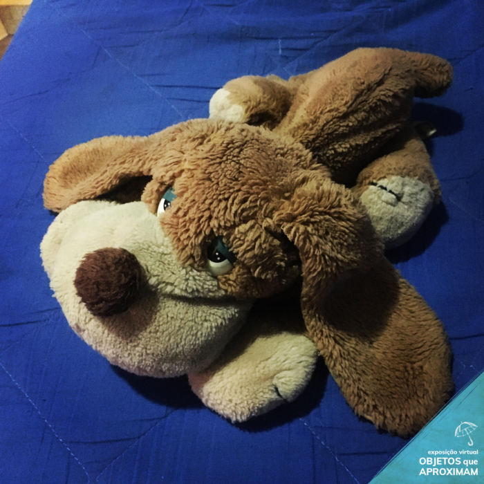 Antes dos cachorros Snif-snif, surgiu na minha vida o Samuel - nome que está na etiqueta e pelo qual sempre o chamei. Ele foi trazido pelo meu avô de uma viagem, dizem que vindo da Alemanha, em 1984, mas sua etiqueta diz que foi fabricado nos Estados Unidos. Provavelmente foi meu bicho de pelúcia favorito. As extremidades - cabeça, patas e bumbum - são preenchidas com enchimento, enquanto o corpo parece vazio e bem maleável, muito macio. Ainda está em perfeito estado.