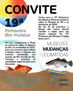 No dia 26 de setembro, o Museu das Coisas Banais convida a todos para um evento especial da 19ª Primavera dos Museus. O tema deste ano é “Museus e mudanças climáticas”. Por isso, organizamos a “Roda de Conversa sobre os Museus do RS e as enchentes de 2024”.